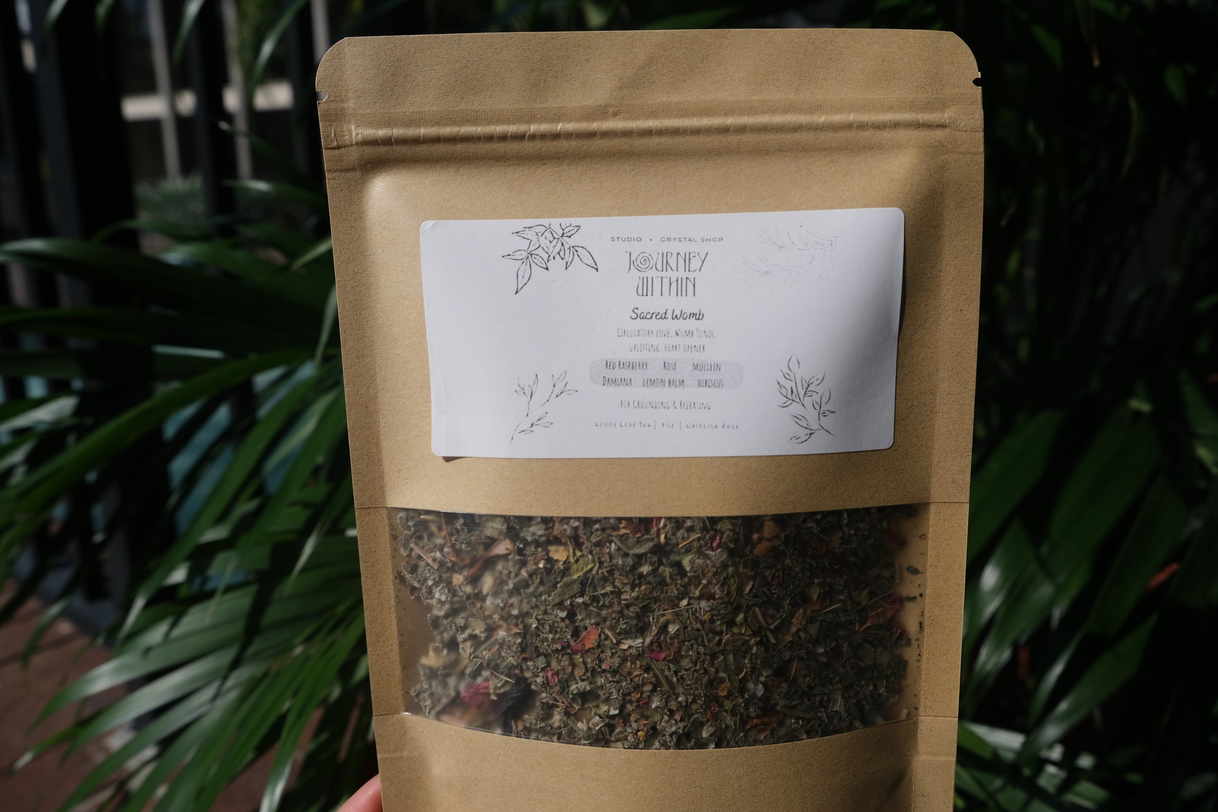 Some herbs are not recommended during pregnancy (e.g., Damiana, Hibiscus) or breastfeeding. The Sacred Womb blend, containing Red Raspberry Leaf, is often used during the third trimester but should be discussed with your healthcare provider first. We strongly recommend consulting your doctor or midwife before consuming any herbal tea if you are pregnant, nursing, or have a pre-existing medical condition.